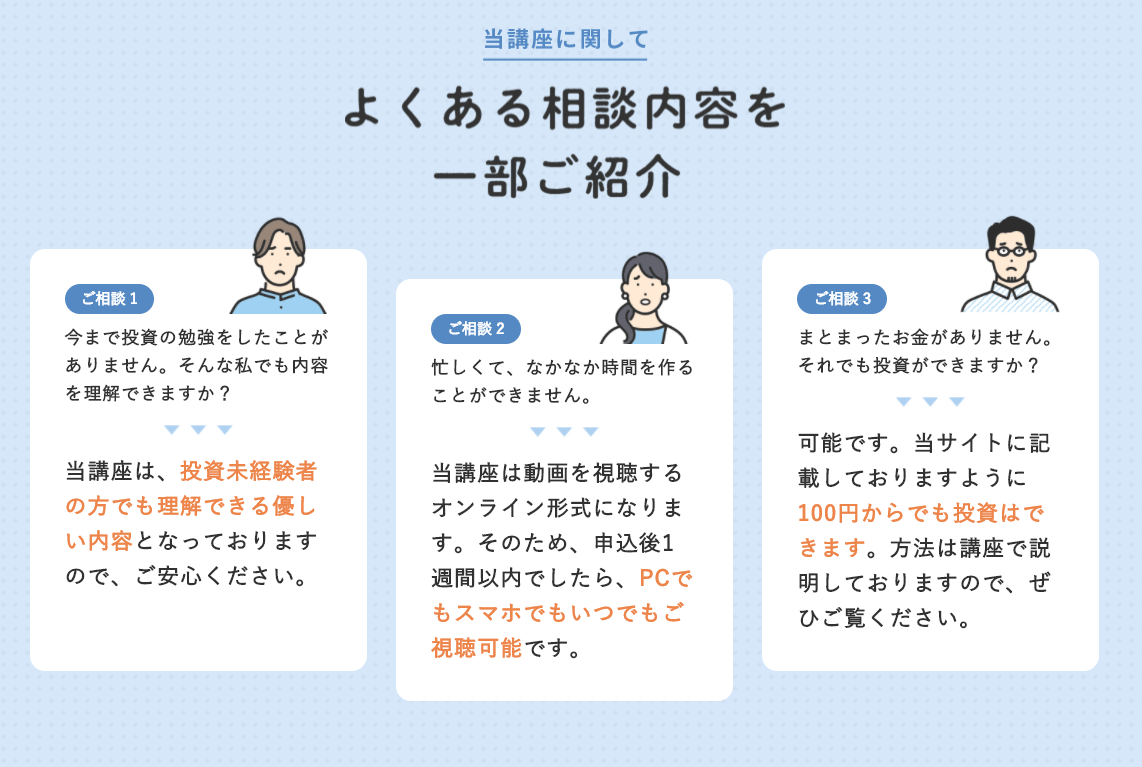 「投資ってなんだか難しそう…」と不安なあなたへ知識ゼロからでもスキマ時間を活用して、毎月安定した収入を得られる投資を始めてみませんか?以下のリンクをクリックして参加申し込みを行っていただければ、「学習グループ」に参加することができ