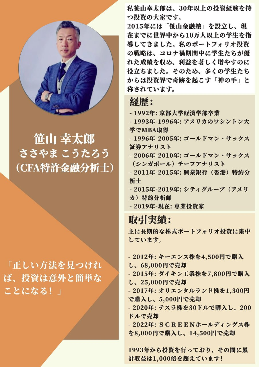笹山 幸太郎先生と私が手を組んで開催する投資・資産運用セミナーが間もなく開催されます!経験豊富な先生と共に、財産の増加を実現するお手伝いをいたします!見逃さないでください!